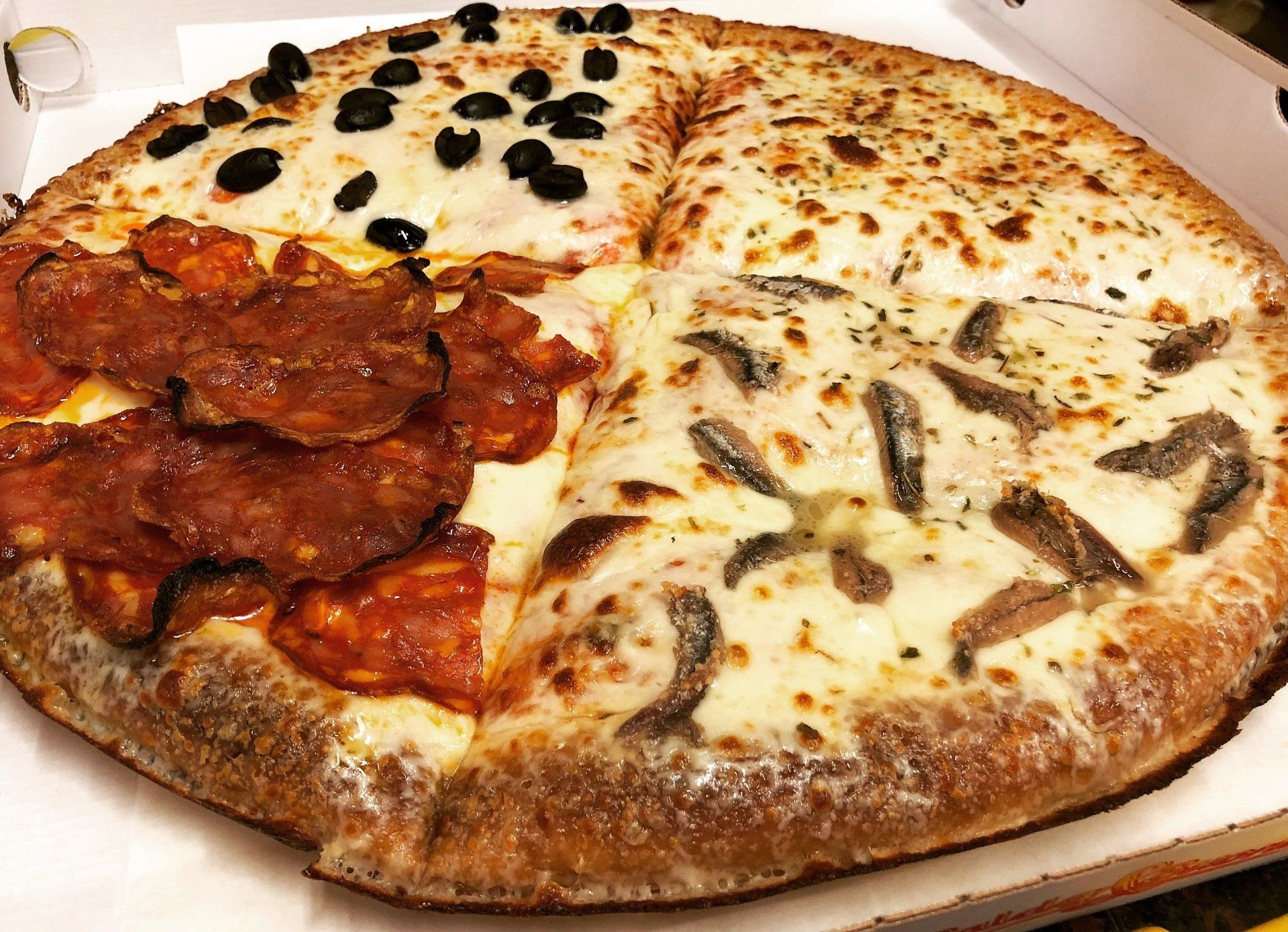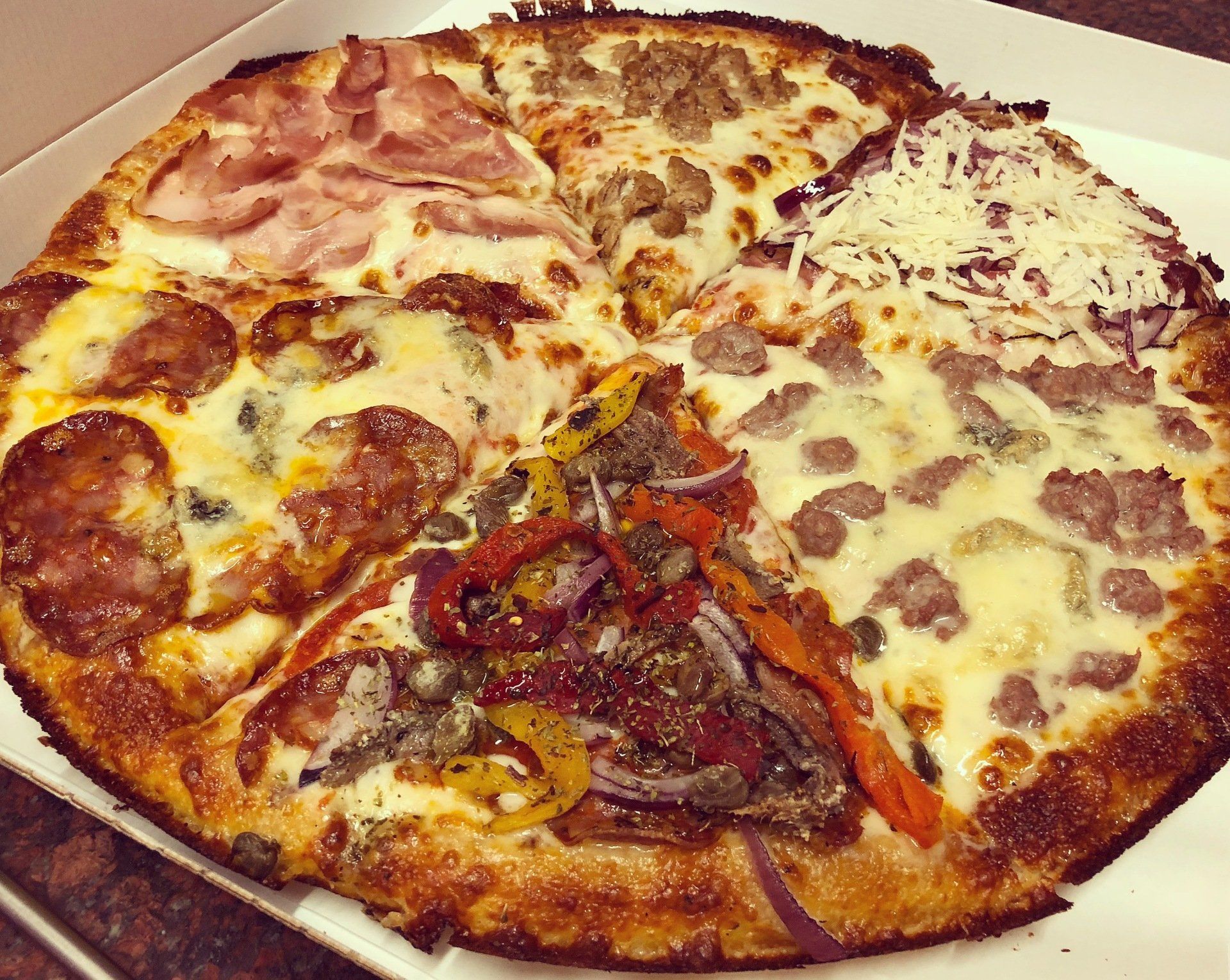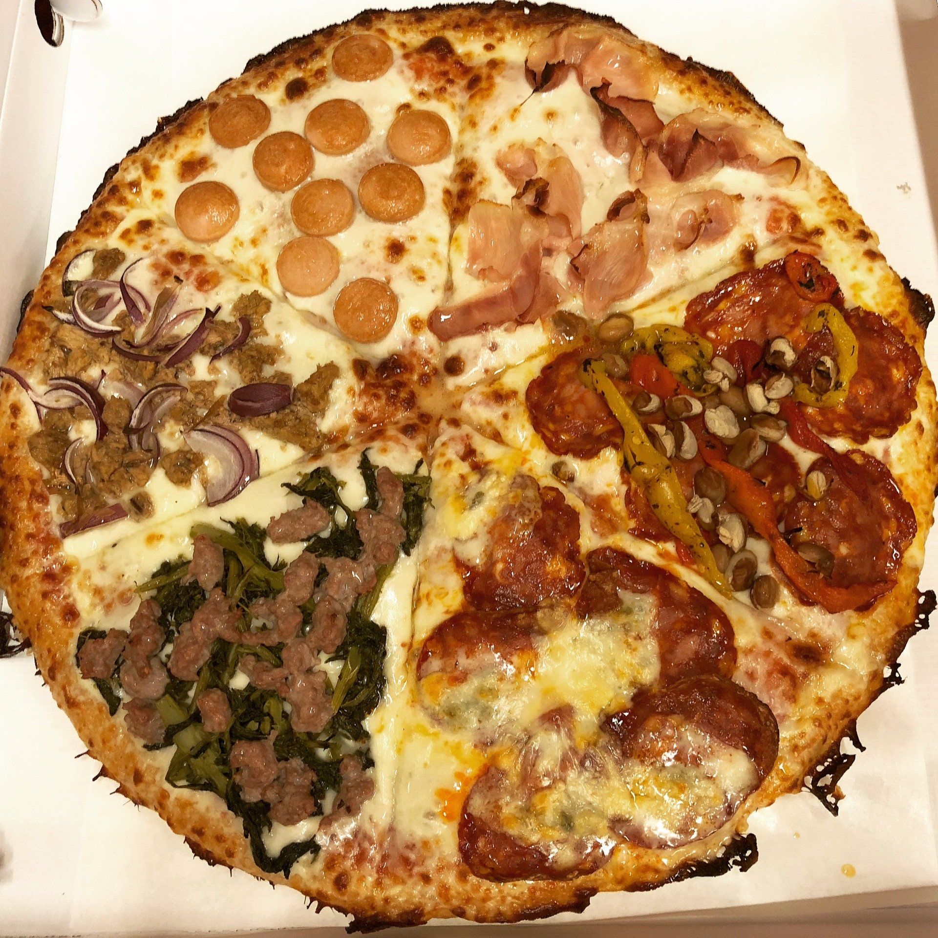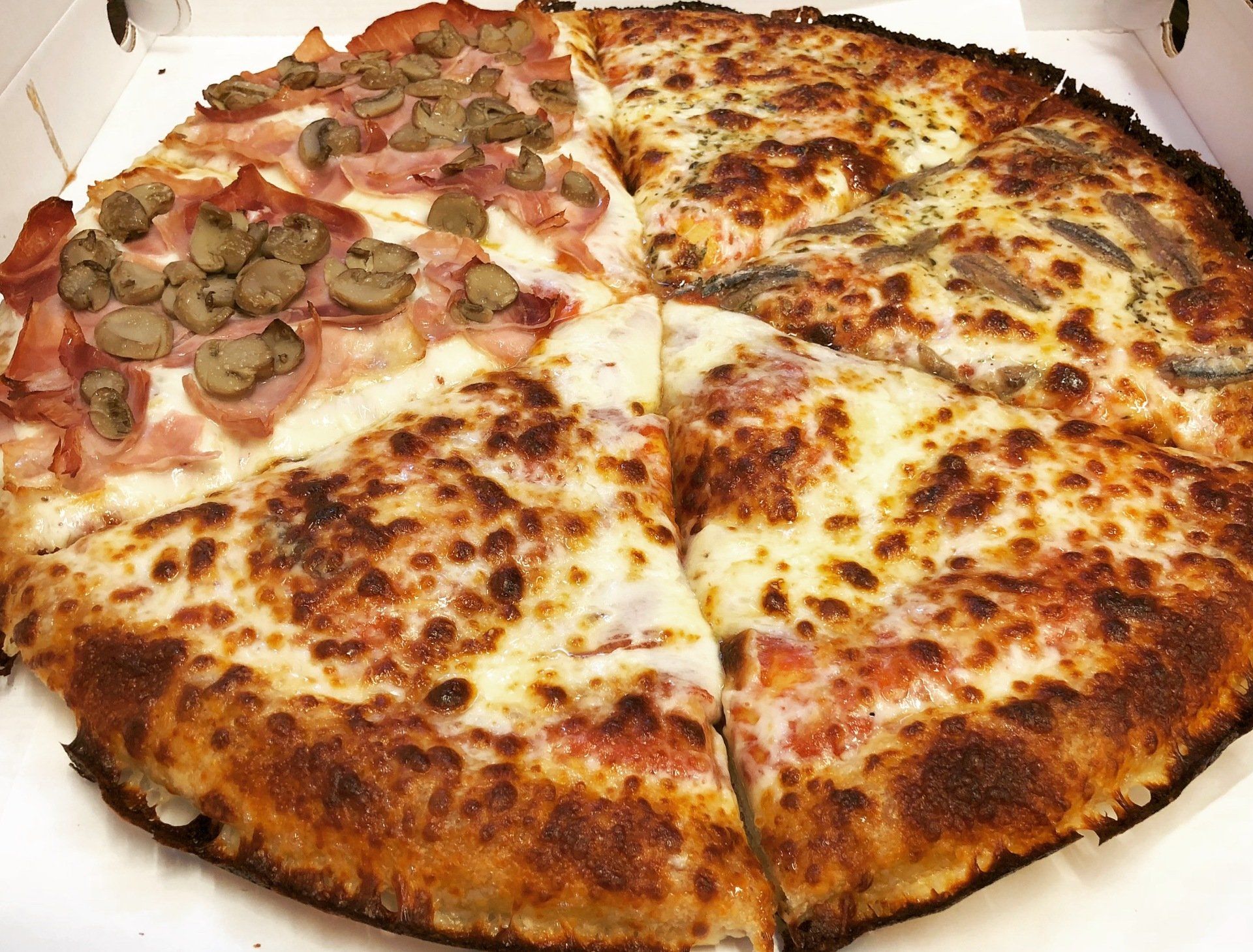 POMODORO MOZZARELLA PROSCIUTTO COTTO CARCIOFI FUNGHI OLIVE ACCIUGHE