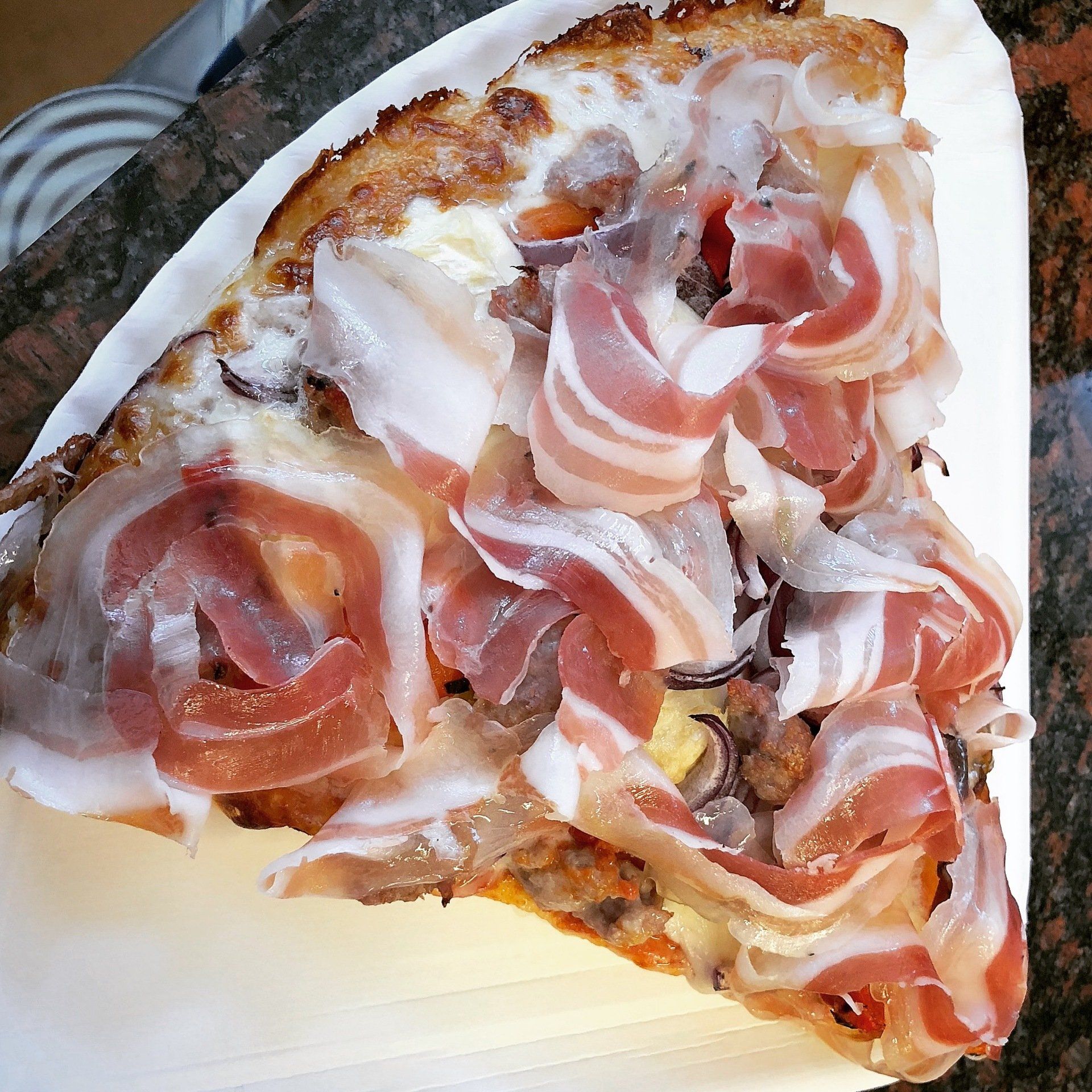 POMODORO MOZZARELLA BRIE CIPOLLE PEPERONI SALSICCIA PANCETTA