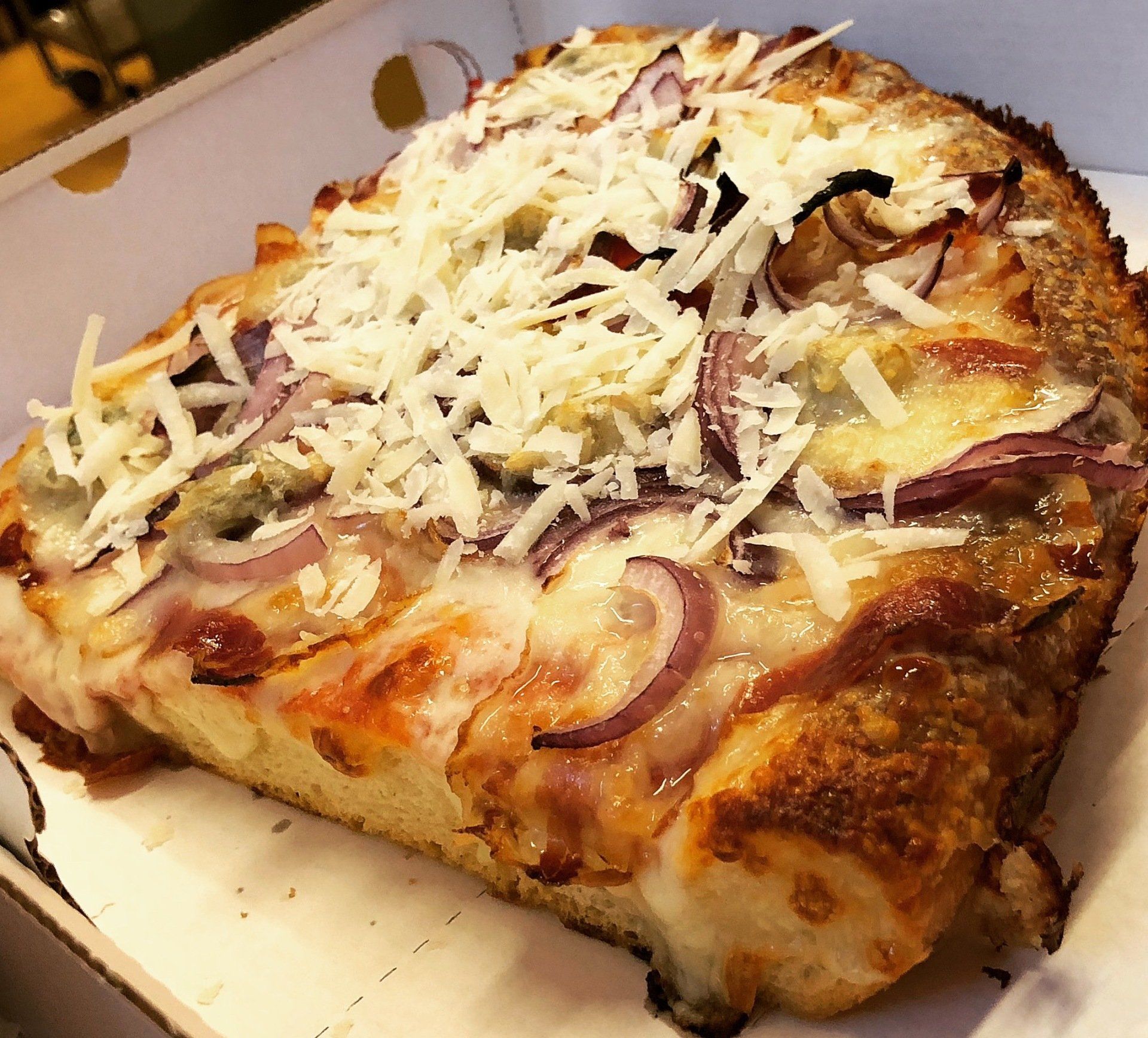 POMODORO MOZZARELLA PANCETTA CIPOLLE GRANA
