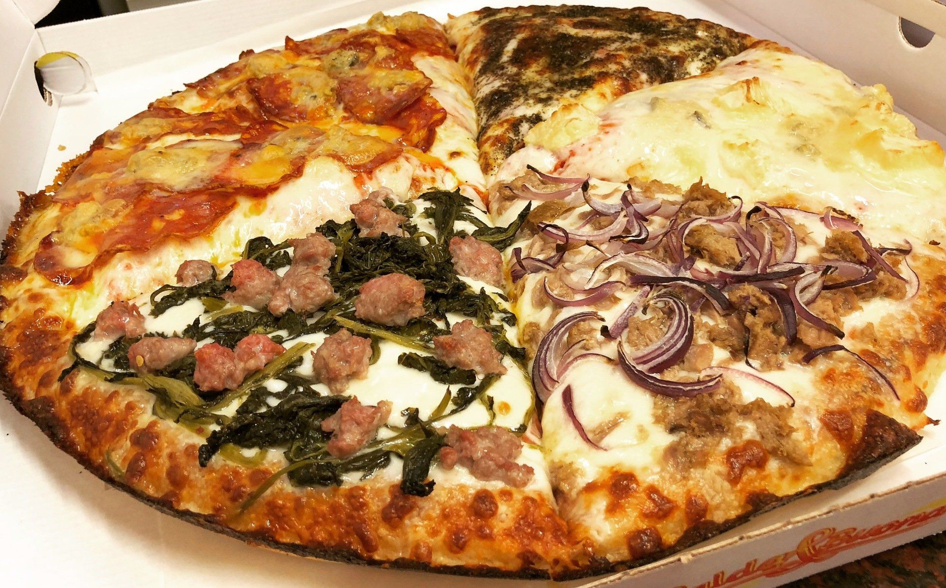 POMODORO MOZZARELLA SALAME PICCANTE GORGONZOLA OLIVE PEPERONI