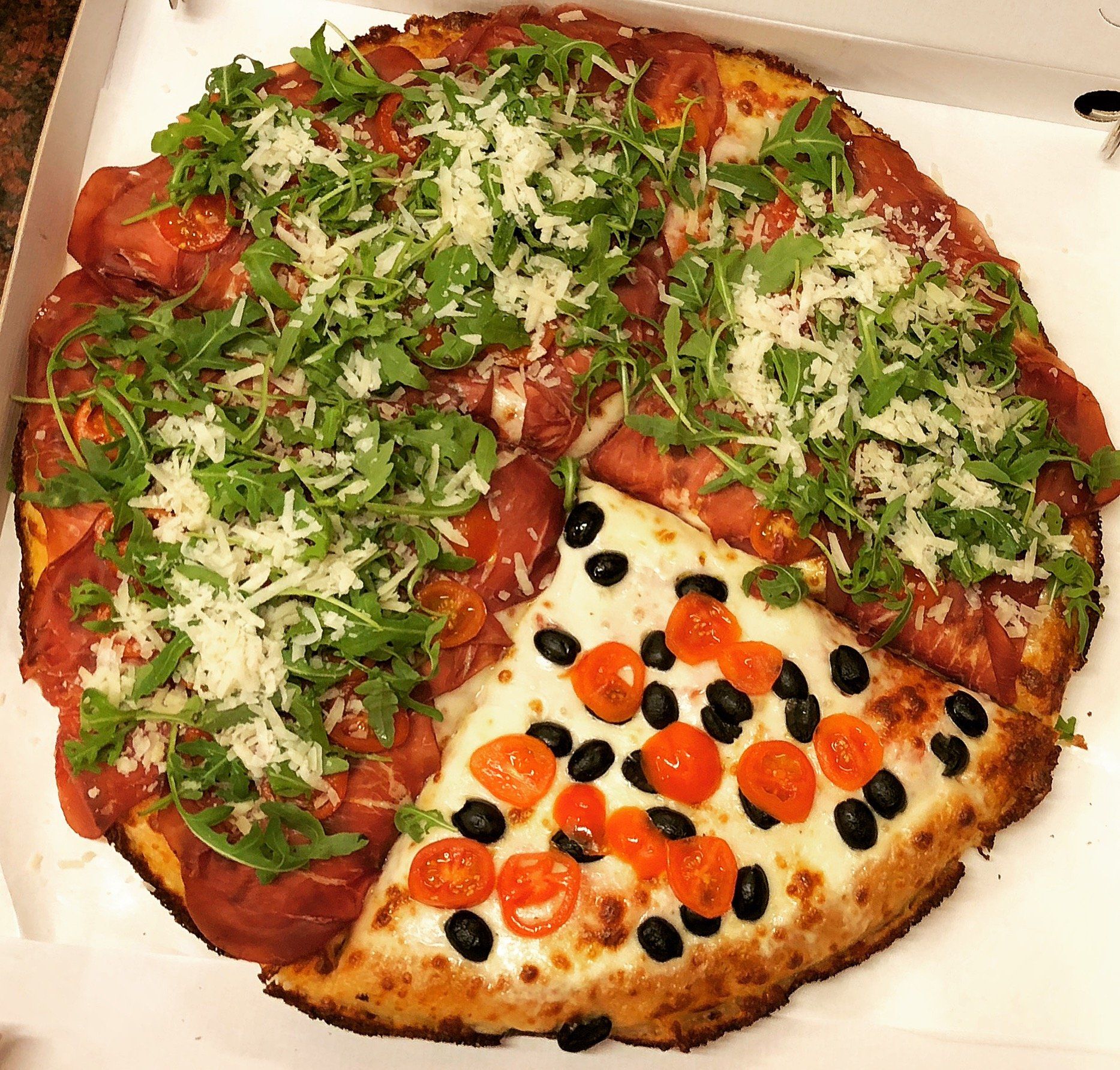 POMODORO MOZZARELLA SPECK GORGONZOLA OLIVE
